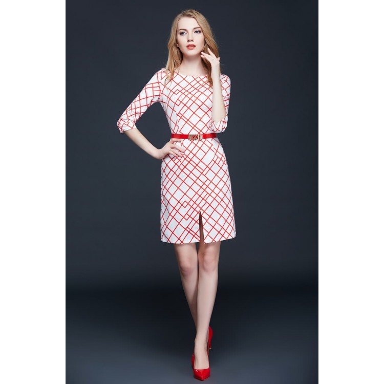 TE9091LLYG Abito slim con stampa rombi irregolari alla moda europea