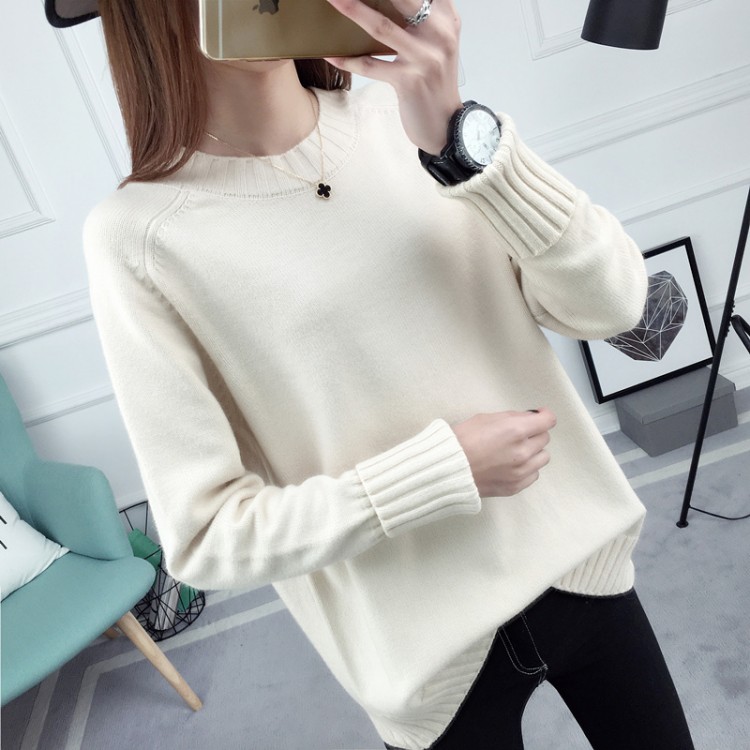 1021 maglione coreano a maniche lunghe con collo rotondo ampio