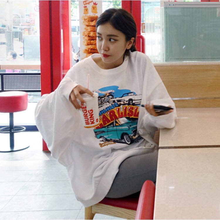 8306C T-shirt casual con belle lettere allentate con maniche a pipistrello e personalità