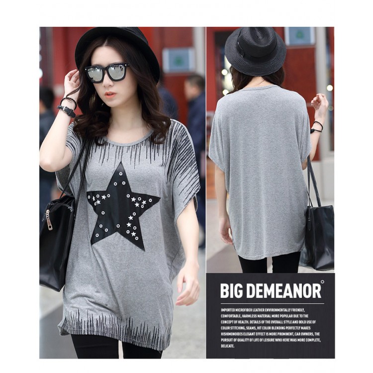 TE6020AYY T-shirt ampia con stampa applique di stella a cinque punte da ragazza grassa