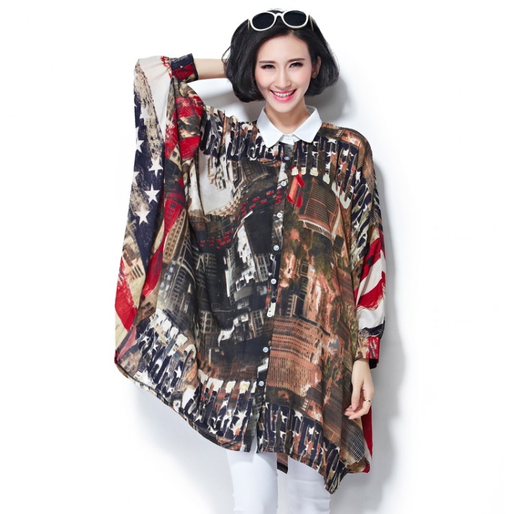 TE7382HSJP Blusa coreana di grandi dimensioni in chiffon con stampa slim