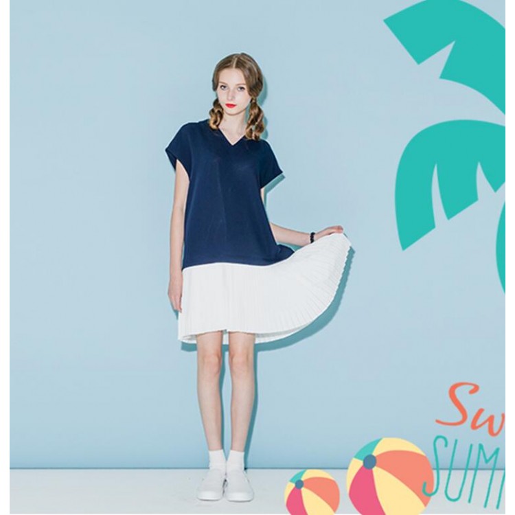 TE6448YZS Abito stile preppy bouffant color contratto con scollo a V alla moda europea