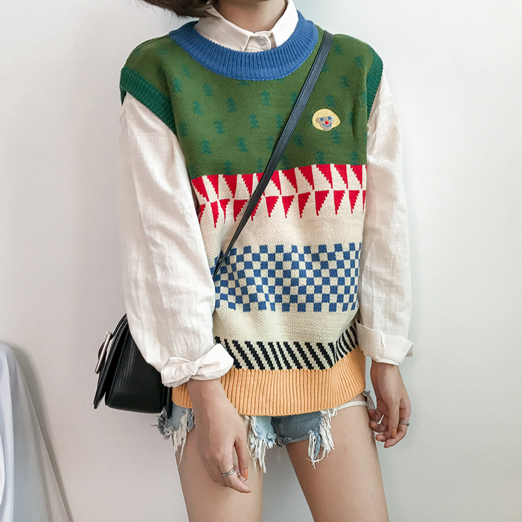 TE8215BL Abito gilet in lana con fiori ricamati in stile coreano