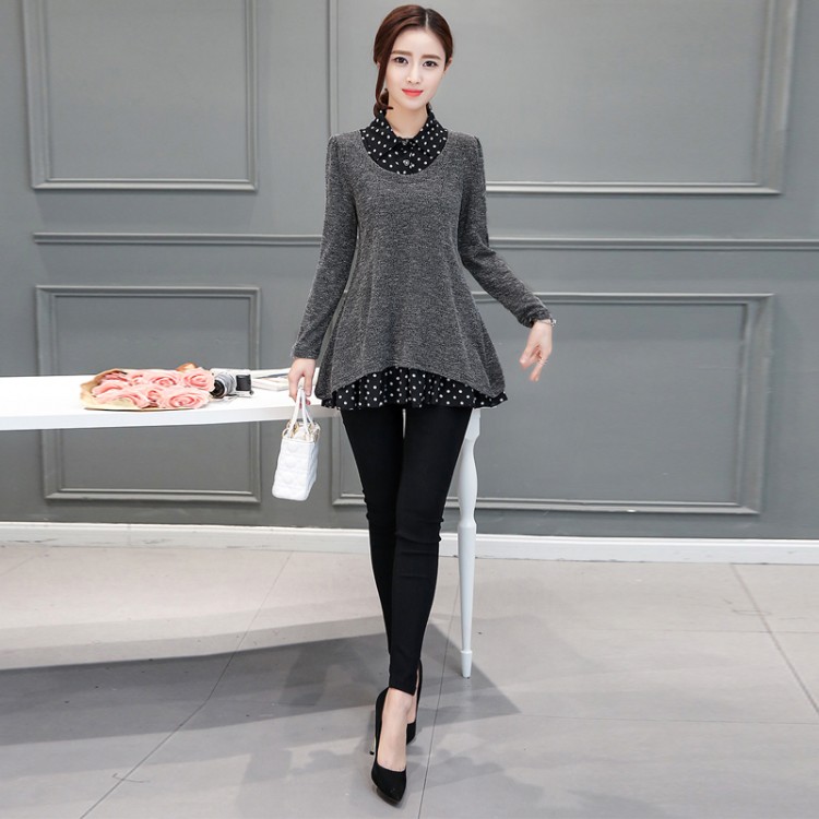1193 top finti in due pezzi lavorati a maglia con giunture a pois taglie forti