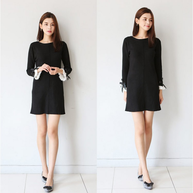 TE1426GJWL Abito decorativo con drappeggio in raso floccato di lana alla moda coreana