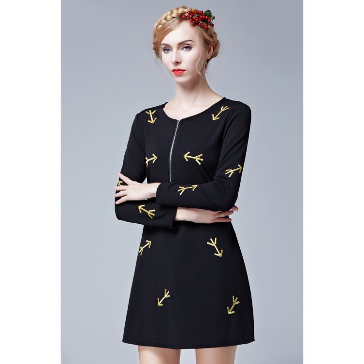 TE2605HY Abito slim con ricamo vita impero temperamento vintage moda europea