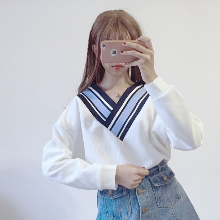 Felpa con scollo a V a maniche lunghe abbinata ai colori 978 preppy stye