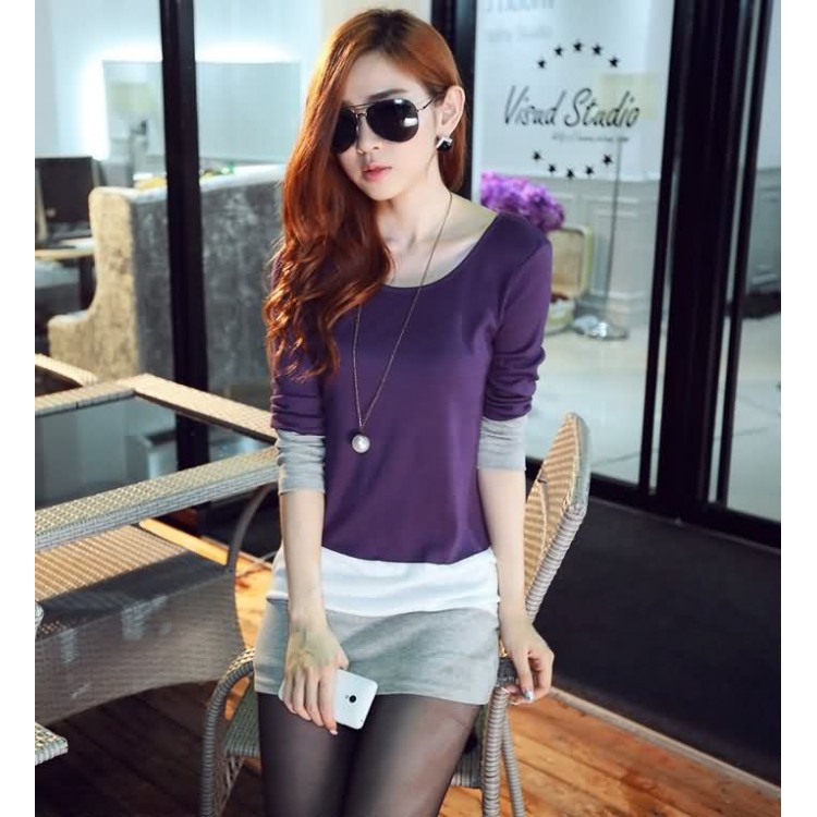 J41583 Abito slim a maniche lunghe temperamento OL viola