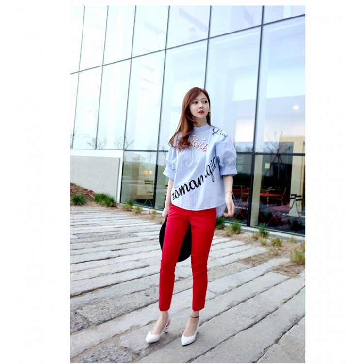 TE1299GJWL Camicia alla moda con decorazione di perline e lettere artistiche in nuovo stile