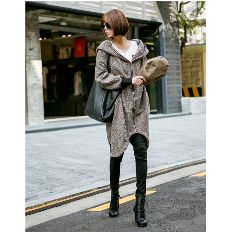 TE1536GJWL Cappotto ampio con cerniera in stile autunnale con cappuccio