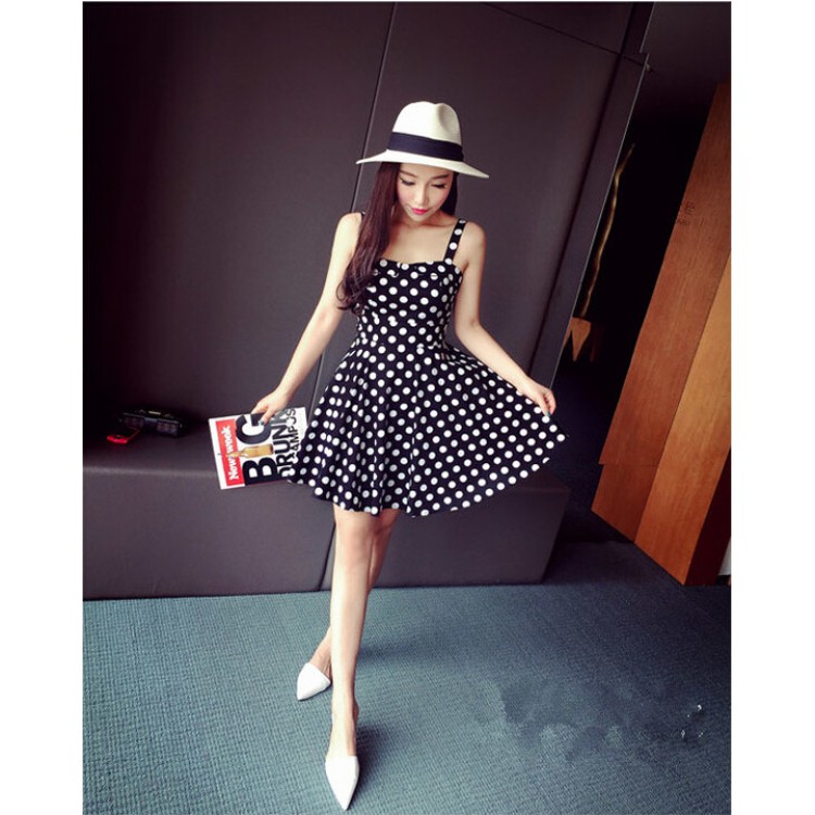 TE6291YZL Abito con allacciatura a pois in vita impero, vita sottile, dolce e fresco
