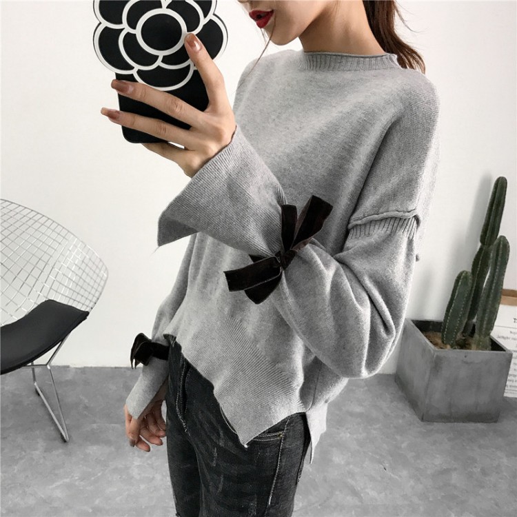 J41599 Top europei a maniche lunghe casual eleganti con pantaloni grigi