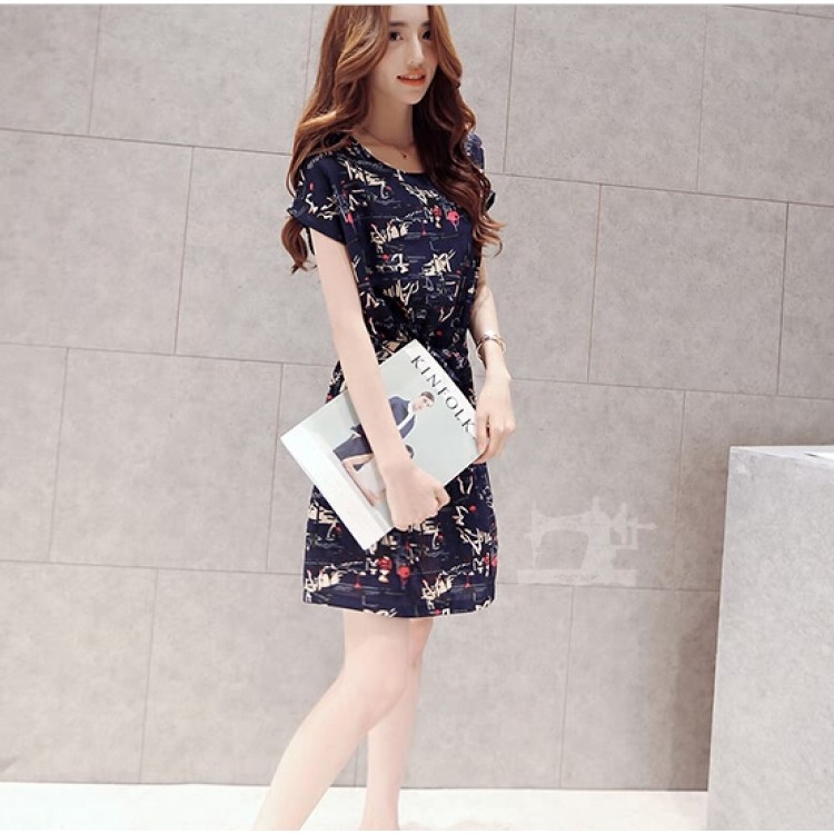 TE3913MY Abito a maniche corte con allacciatura in vita con stampa brividi