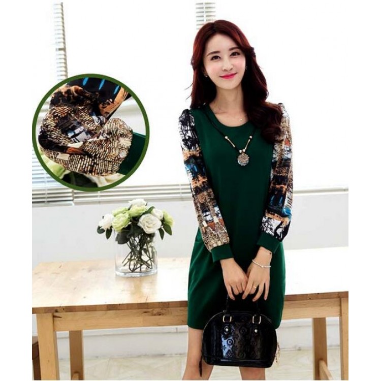 TE6936JMFS Abito con fodera in lana con giunture sulle maniche e stampa alla moda coreana