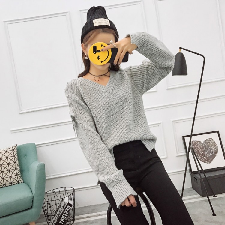 5542 maglione alla moda con maniche allacciate