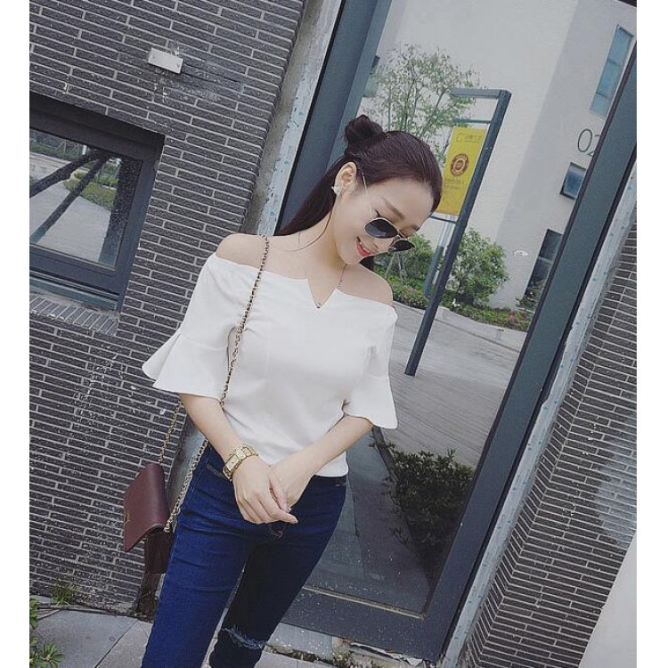TE3169LXY Top in chiffon spesso con scollo a barchetta e maniche a balze dal design unico