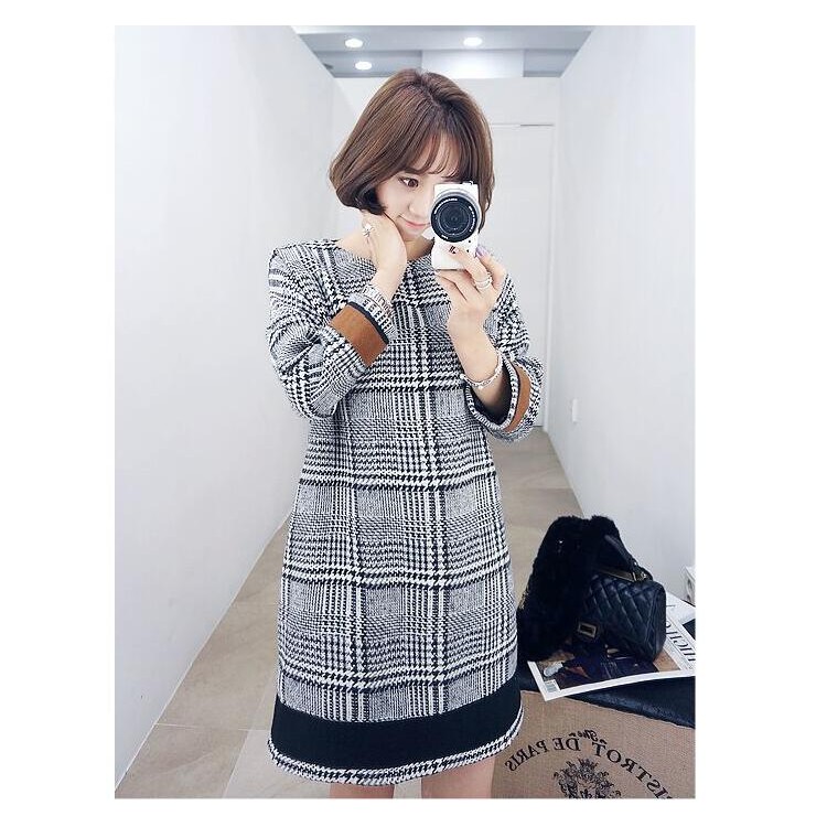 TE6303YZS Abito in lana spessa a quadri in tinta