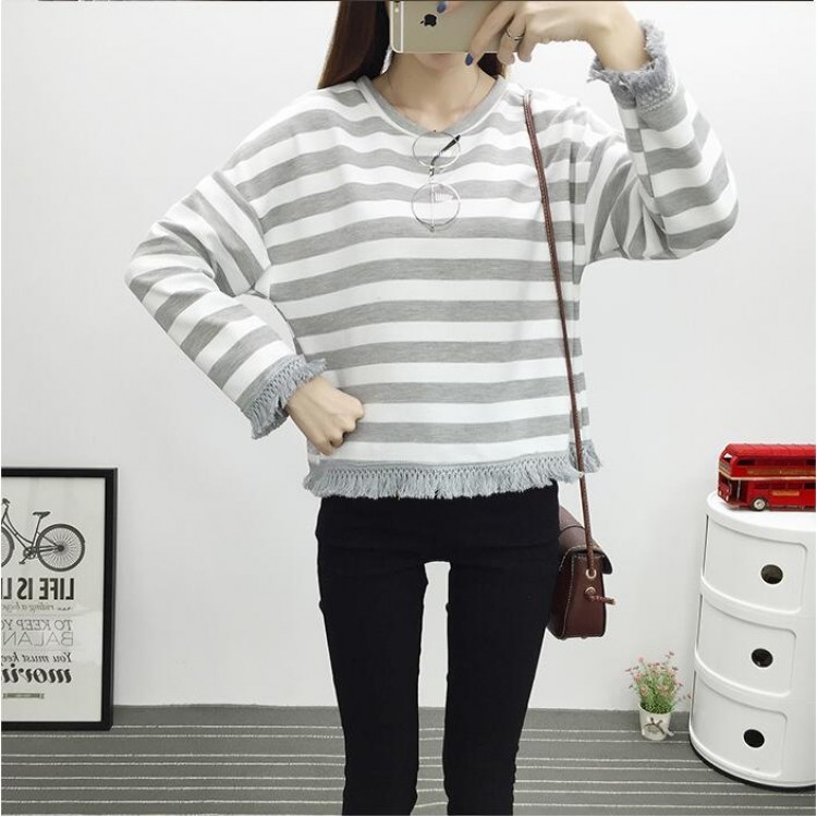 TE6640BYZJ T-shirt a maniche lunghe stile preppy a righe joker moda coreana
