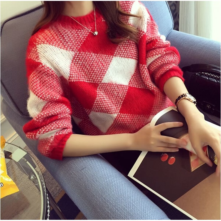 TE8237BLFS Maglione pullover alla moda coreana con motivo a quadri e colori abbinati