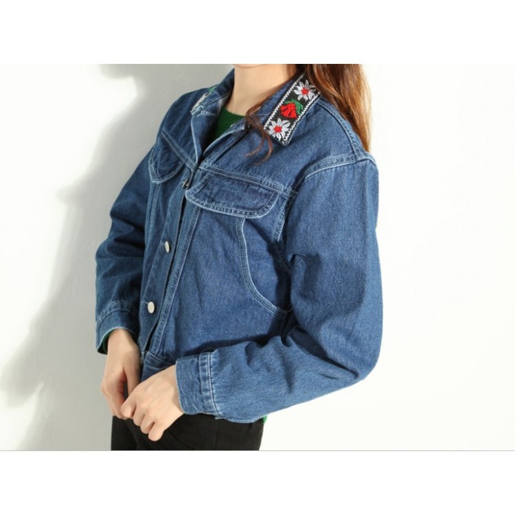 TE9013PPNZ Giacca in denim con colletto vintage ricamato