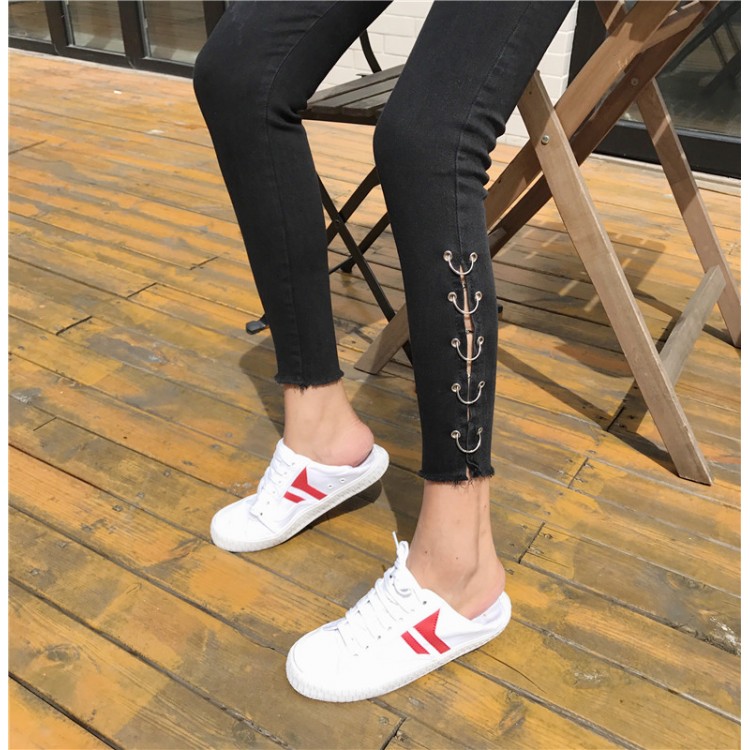 b86 anello a nove punte jeans a matita con fori sottili