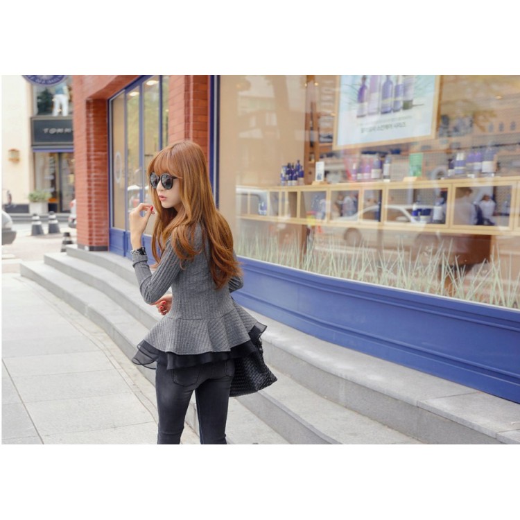 TE1396GJWL Top slim a maniche lunghe abbinati a colori jolly alla moda coreana