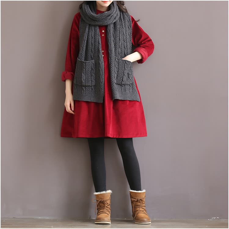 TE1662MLCS Abito ampio in velluto a coste vintage foresta