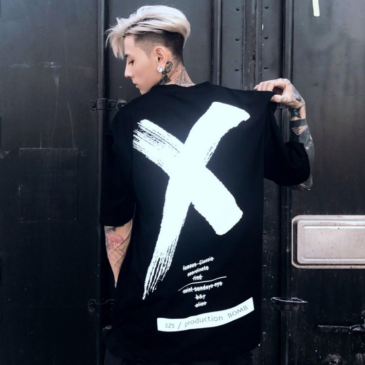 T-shirt ampia per uomini e donne con slogan di vernice di grandi dimensioni in stile trendy 386