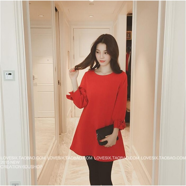 TE5062LXY Abito girocollo in puro colore con maniche bowknot