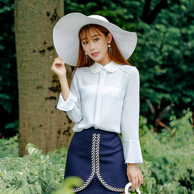 8650 Camicia in chiffon con risvolto con diamanti alla moda coreana