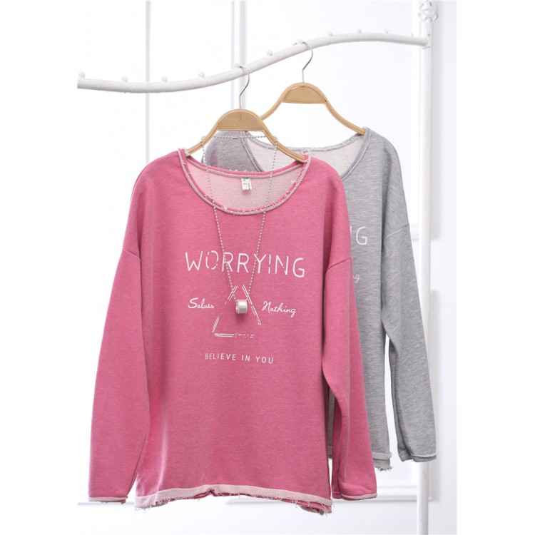 TE803LLJ Felpa con maniche a pipistrello e stampa di lettere semplici e casual