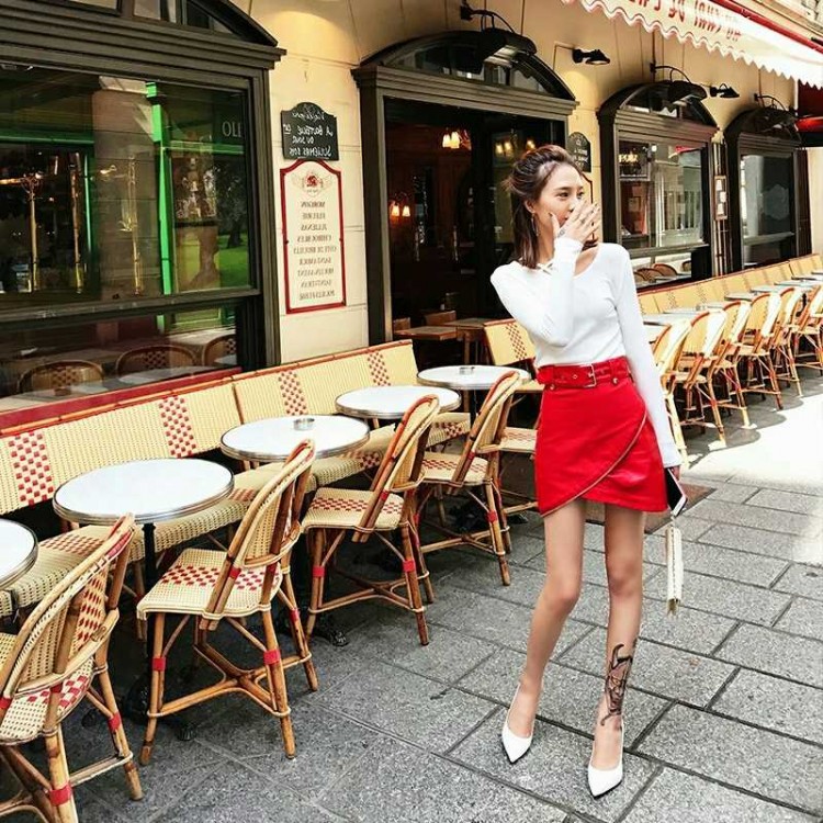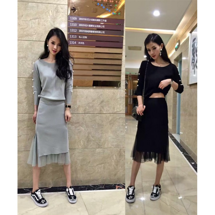 8919 perline lavorate a maglia con top lunghi e gonna con giunture di filato