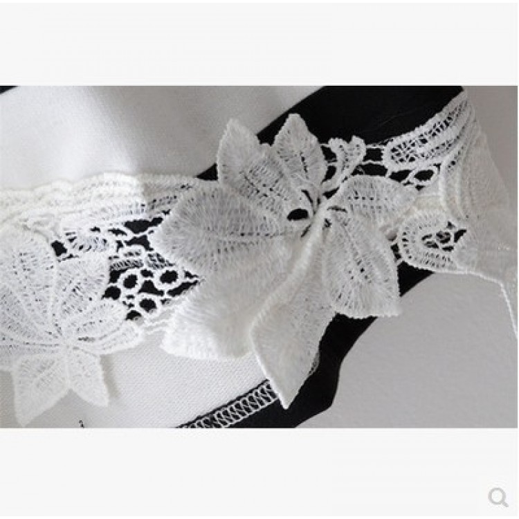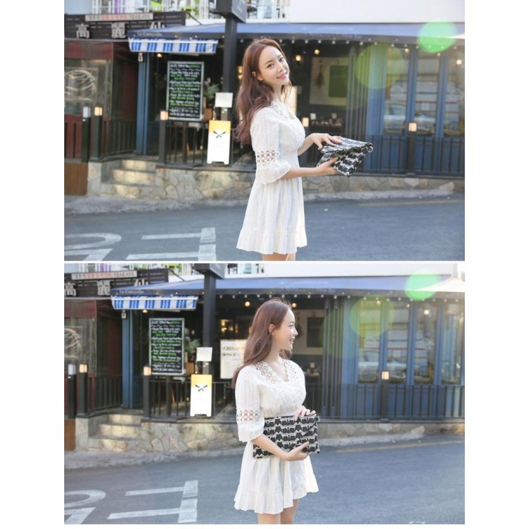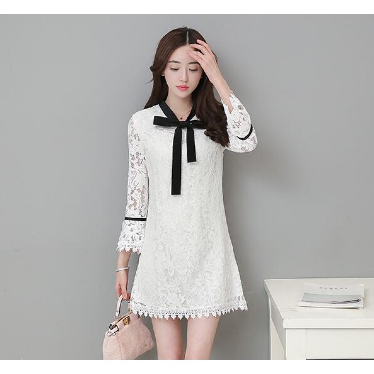 TE9910WJYS Abito a vita slim con cuciture a mezza manica in pizzo a tromba