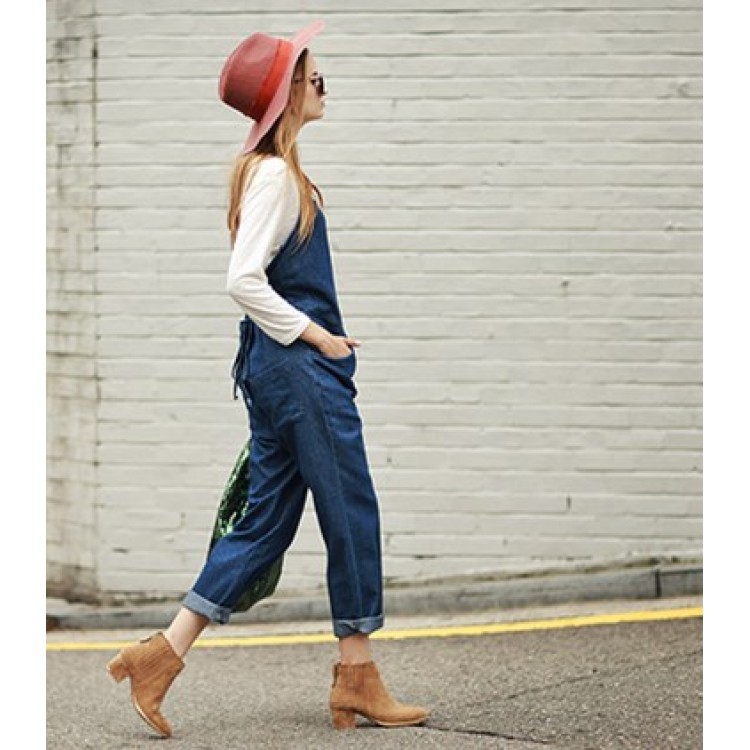 TE1381GJWL Pantaloni in denim con bretelle casual alla moda euramerican