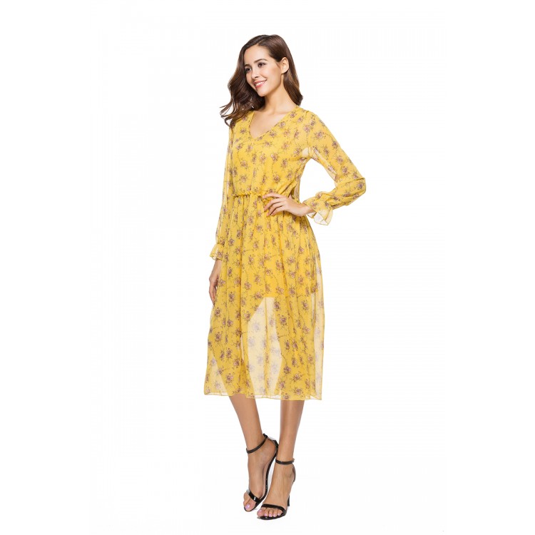 1009-1 piccolo abito lungo floreale in due pezzi a maniche lunghe
